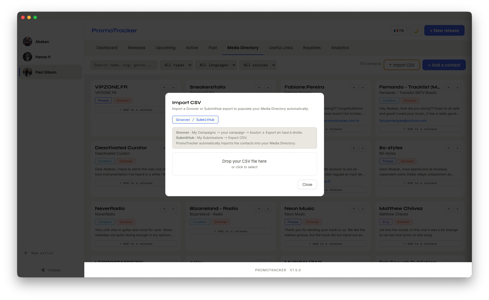 Yes. Simply export your campaign as a CSV file from Groover or SubmitHub, then import it into PromoTracker.
